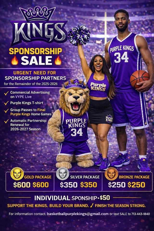 Sponsor the Purple Reign Basketball Club and enhance your business platform with a professional basketball organization. A great way to promote your business via t shirts, and other novelty promotional items